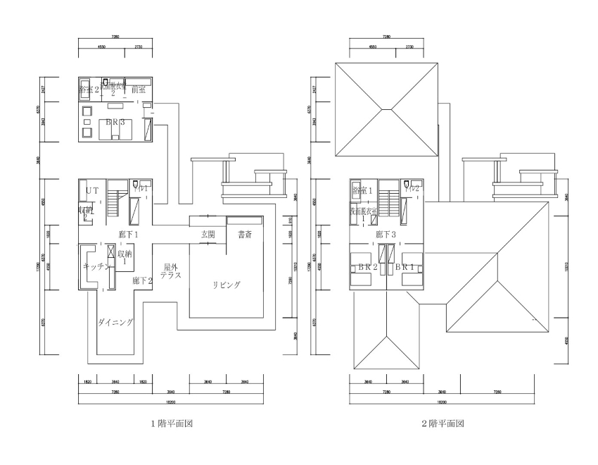 お好きな建物を建築可能ですが、建築家の三井永乗さん(HMA社)(コーン・ペダーセン・フォックス。坂倉建築研究所出身)にプランを作成して頂きました