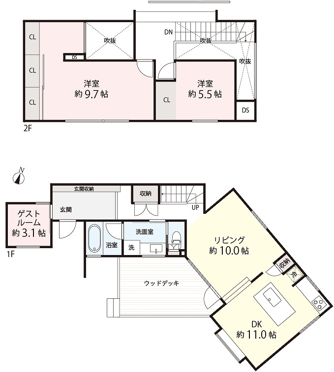 3LDKの間取りです。玄関横にはゲストルームがあります。お客様が多い方はプライベート空間に入らずお話できたりします。